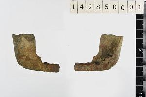 山王10次のこれら青銅器は、2点とも青緑色の色調で表層は腐食生成物に覆われることなく残存している点でよく似通っています。分析による確認はしていませんが、錫分の多い青銅器に特徴的な質感を示しています。