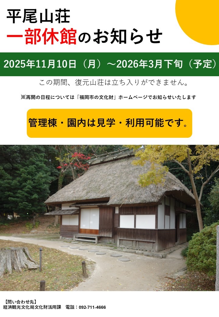 2025年10月30日【お知らせ】板付遺跡、平尾山荘は一部立ち入りを制限します